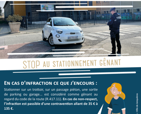 La mairie poursuit sa campagne contre les incivilités : stationner sur les trottoirs, passages piétons ou devant les garages crée des risques pour tous, notamment pour les personnes à mobilité réduite,…