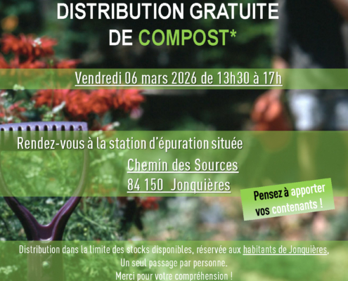 Le Pays d’Orange en Provence vous informe que SUEZ, dans le cadre du nouveau contrat de Délégation de Service Public, procédera à une distribution gratuite de compost une fois par an sur l’ensemble des communes de l’intercommunalité.